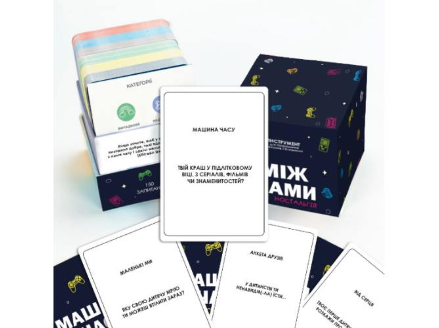 Между Нами: Ностальгия(укр.)— настольная игра, которая возвращает в самые трогательные моменты прошлого. Школьные годы, университетские дни, культовые рекламы — каждая карточка пробуждает воспоминания, вызывая смех, умиление и радость.