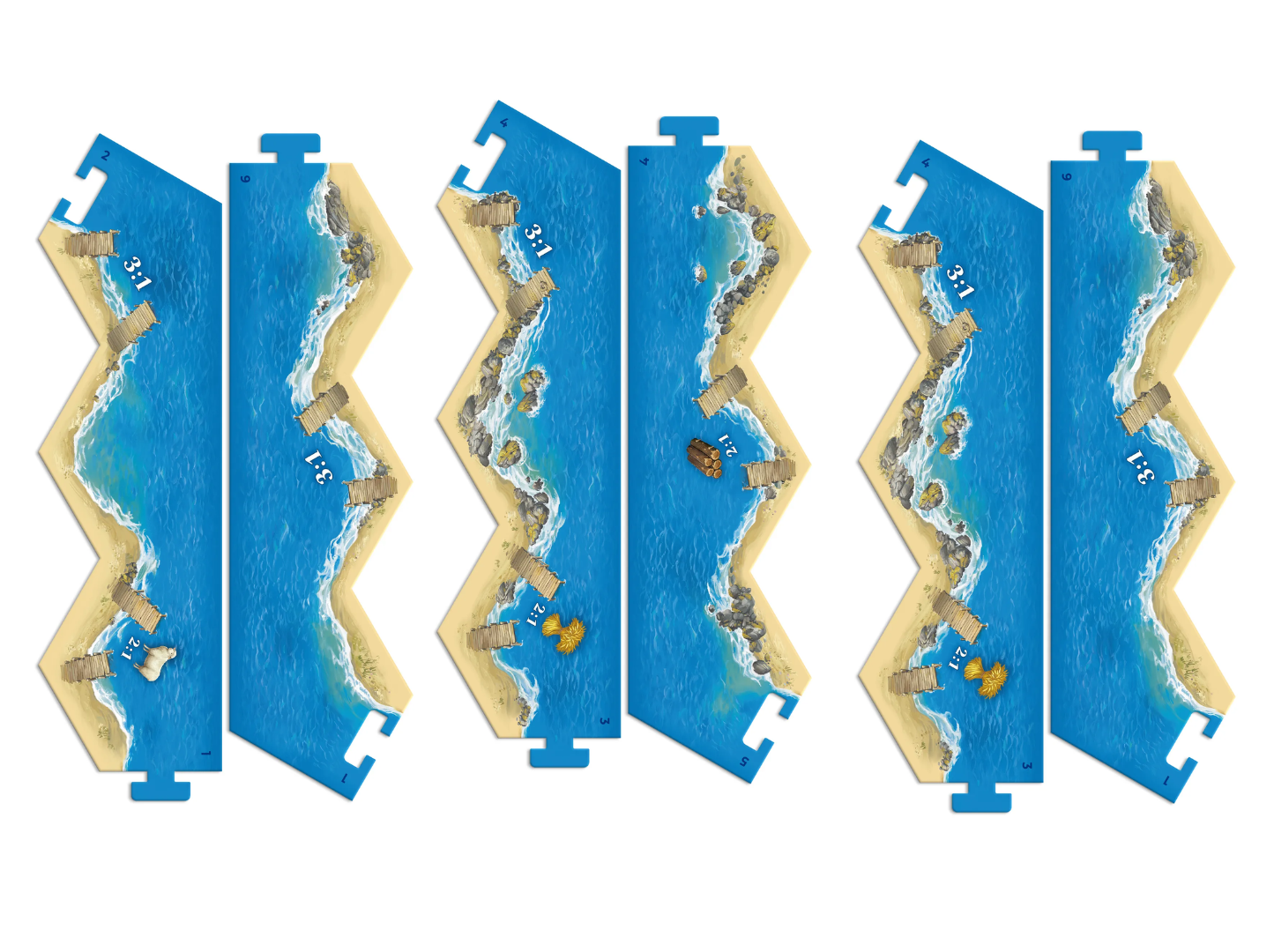 Важно учитывать действия соперников и влияние разбойника, который может блокировать добычу ресурсов. Благодаря модульному полю каждая партия развивается по-новому.