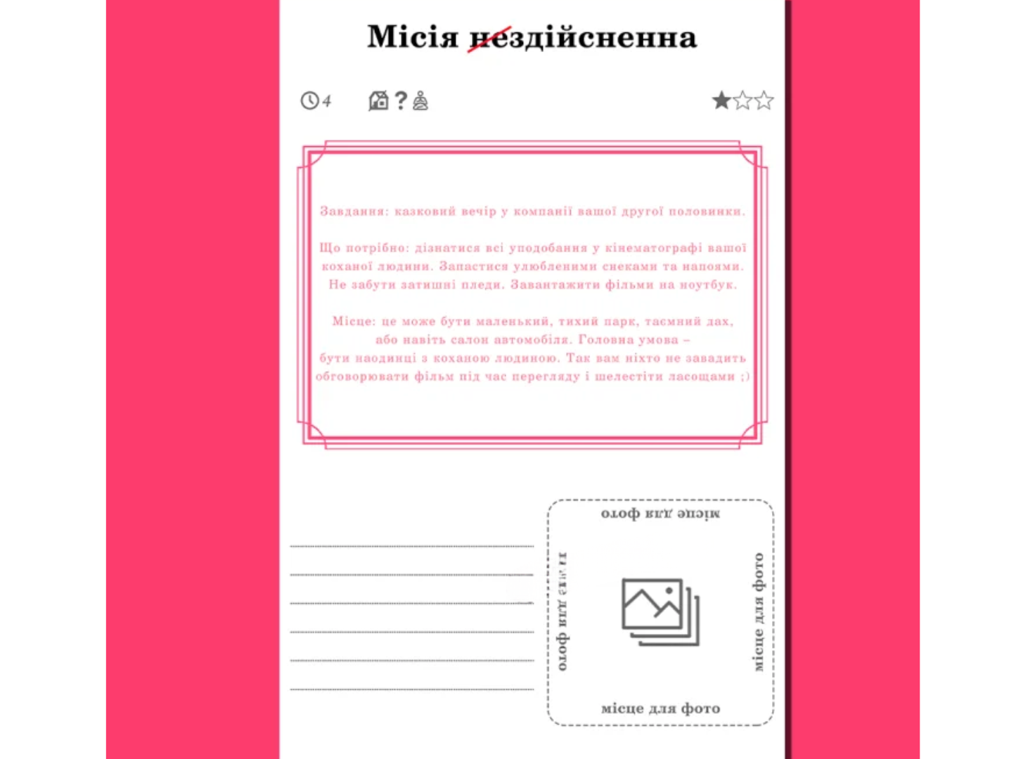 - Места для фото и заметок, чтобы сохранить ваши самые яркие воспоминания и превратить книгу в личный альбом любви.