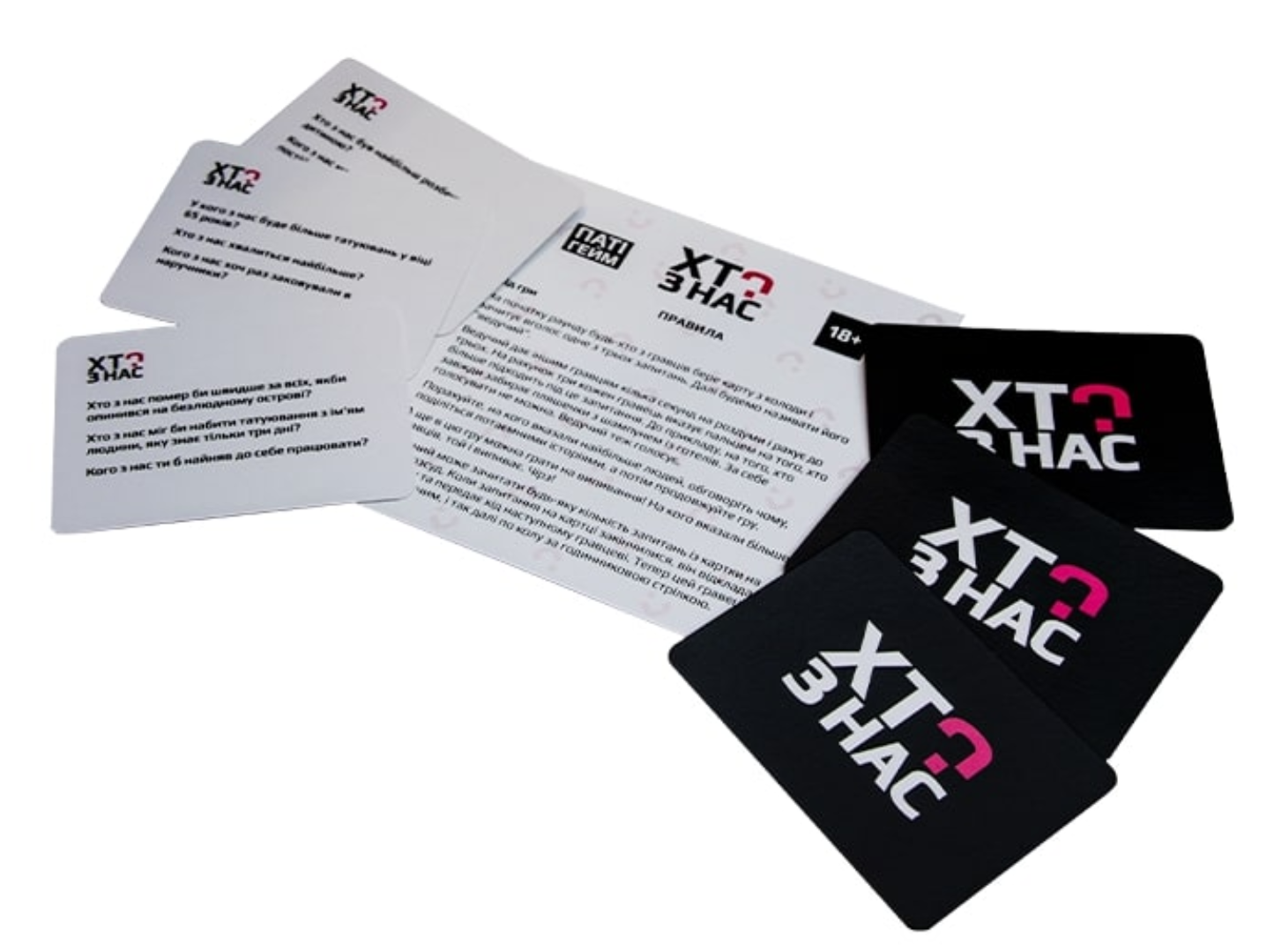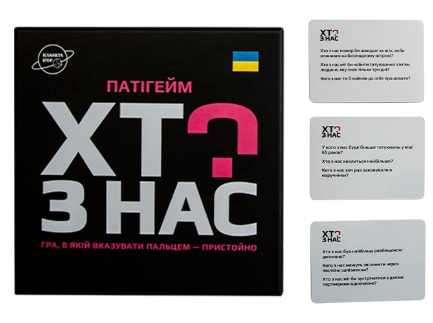 «Кто из нас? (укр.)» — это весёлая и провокационная игра для взрослых компаний, где ответы говорят не словами, а жестами. Здесь не нужно спорить или искать правильные ответы — просто указывайте пальцем на того, кто лучше всего подходит под вопрос.